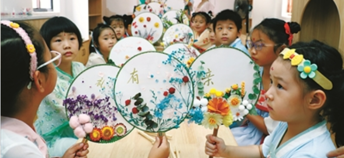 浙江慈溪鄉(xiāng)村“復(fù)興少年宮”:"小候鳥"制作暖心團(tuán)扇送"大白"