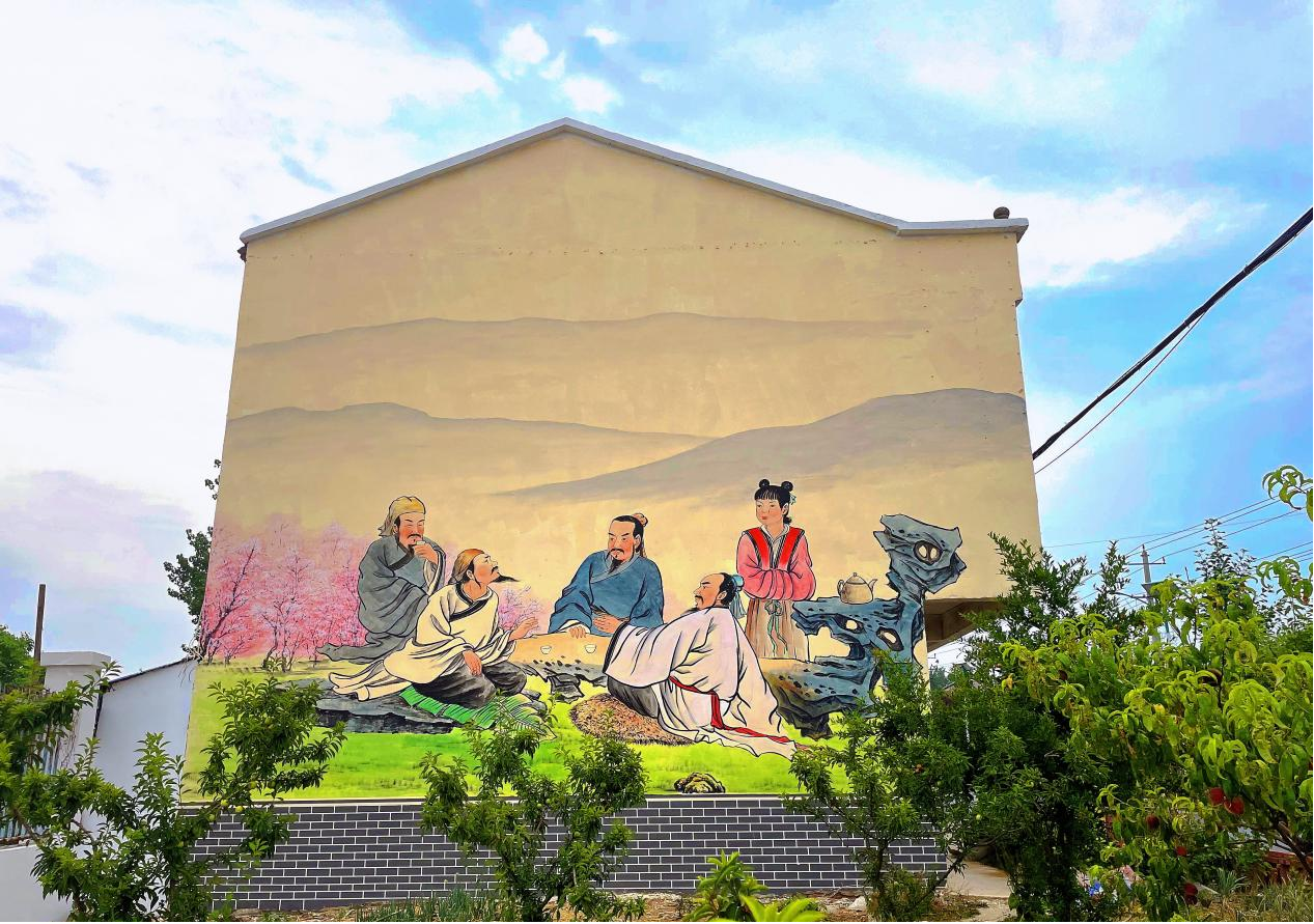 孙家圩子村“三馆”入口处绘制的杏林春暖大型墙体彩绘。宋卫卫 摄