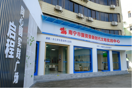 南宁市国资委新时代文明实践中心于2022年7月1日揭牌并投入使用,其下设南宁建宁水务投资集团有限责任公司新时代文明实践所、广西绿城水务股份有限公司新时代文明实践站和营业处新时代文明实践点。目前,实践中心充分结合所在的水务营业大厅资源优势,致力打造成为一个集思想引领、道德教化、文化传承于一体的精神文明建设阵地,搭建水务特色志愿服务的广阔舞台。