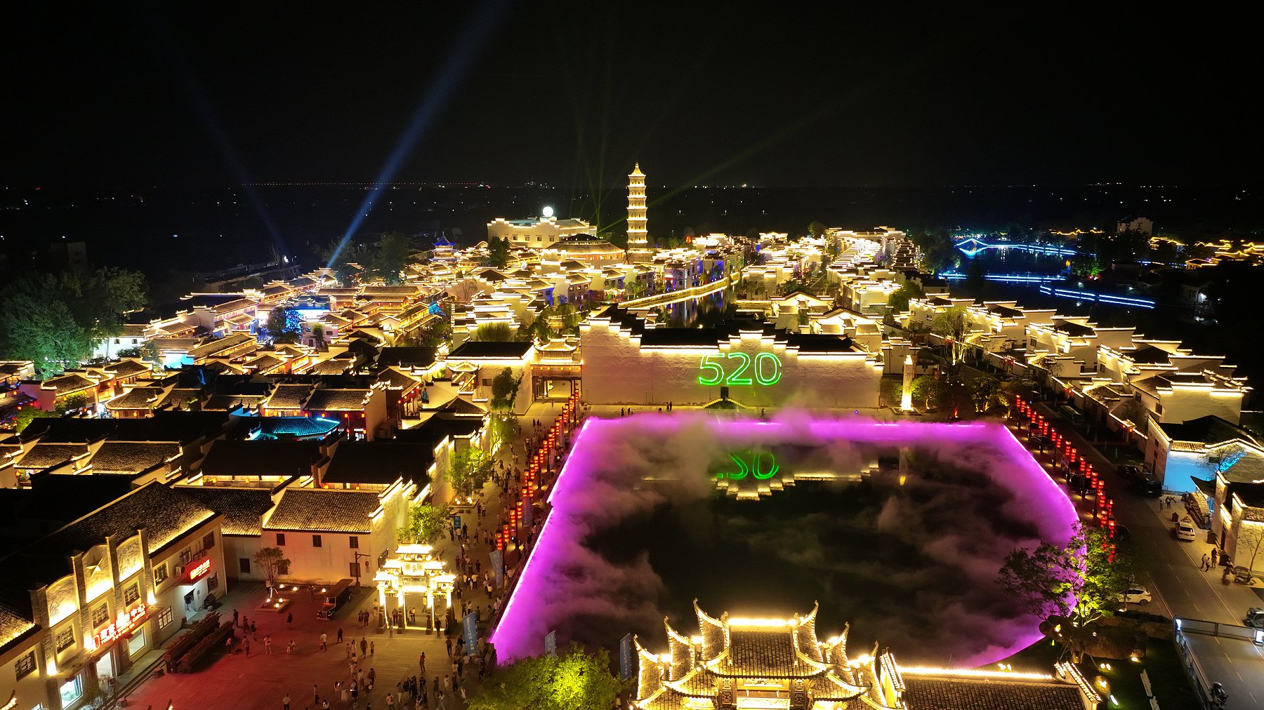 犁桥水镇夜景,各种精彩纷呈的文化活动演绎着乡风民俗。安徽省文明办 供图