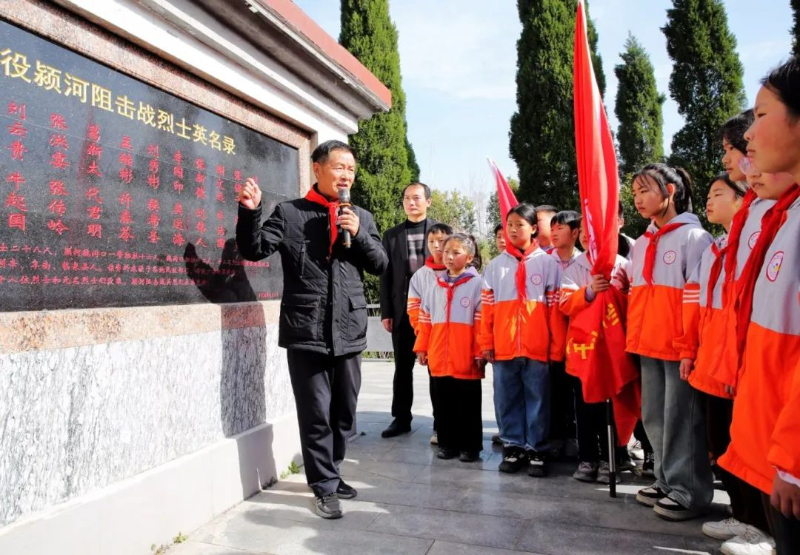 陈广安给学生们讲述颍河阻击战的故事。阜阳市文明办供图