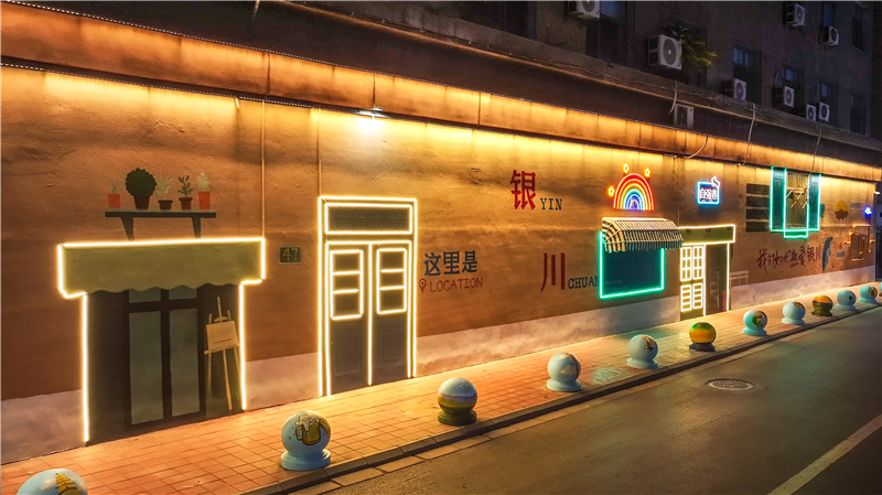 在银川,精神文明建设的生动实践不仅陈列在馆内,还在出门可游的大街小巷里。兴庆区一条昔日默默无闻的老街巷——自强巷,通过精心改造与创意融合,这条承载着厚重历史文化的巷子,如今不仅焕发出勃勃生机,更引领了一股独特的文旅消费热潮。自强巷全长约810米,曾是基础设施老旧、被时光遗忘的角落,自2021年起,银川市兴庆区启动了特色老街巷改造工程,自强巷迎来了华丽的蜕变。改造中,墙绘艺术成为最大的亮点,一幅幅充满艺术感与文化底蕴的墙绘作品,不仅美化了环境,更赋予了巷子浓厚的艺术氛围,特别是那些创意十足、色彩鲜艳的“这里是银川”“我们如此热爱银川”等标语,不仅提升了银川的城市形象和文化软实力,更为文旅经济注入了新的活力。