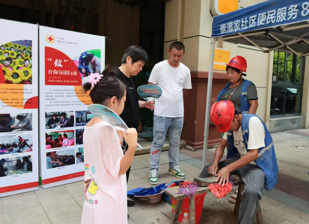 除了便利的购物体验,集市还提供了一系列免费服务,包括理发、磨刀、修鞋、健康检查、政策咨询、垃圾分类、金融服务等,为居民解决生活中的实际困难,让生活更加便利。