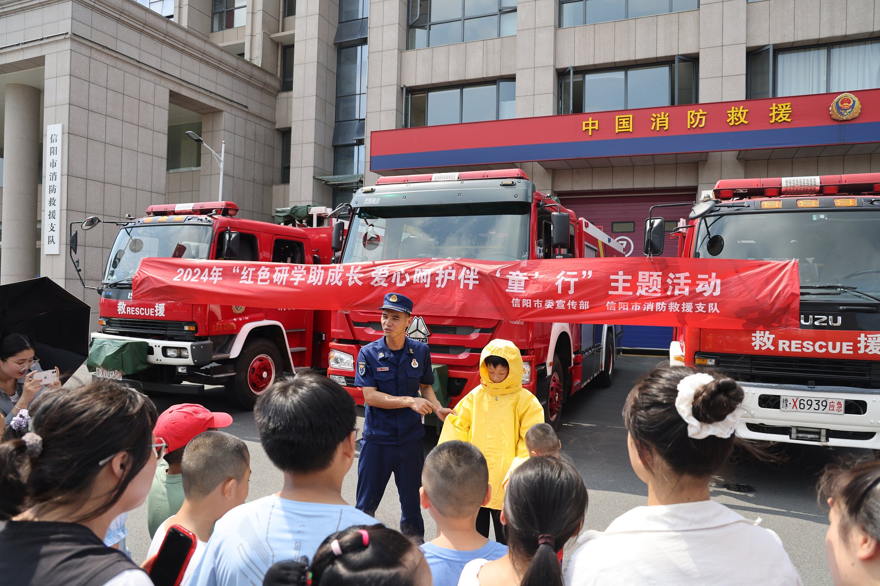 信阳市消防救援支队开展“红色研学助成长 爱心呵护伴‘童’行”主题活动。信阳市文明办供图
