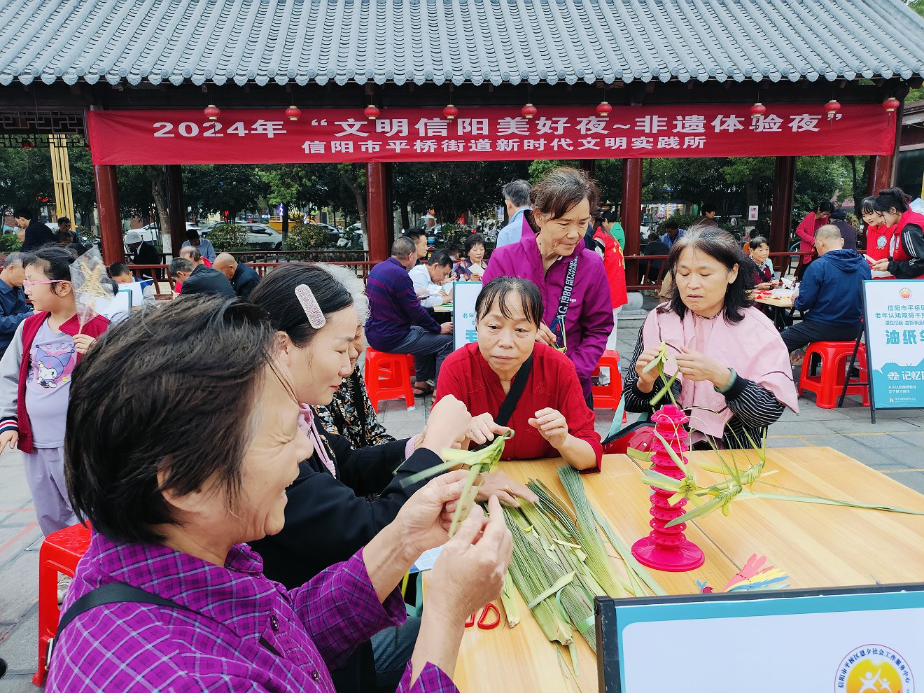 信阳市平桥街道新时代文明实践所“文明信阳美好夜·非遗体验夜”活动。信阳市文明办供图