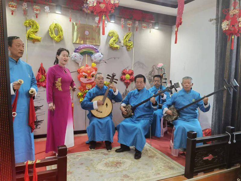 10月16日,秦安县集贤文艺剧社的社员们正在排练秦安小曲,唱响新风尚。新华网发(马海林 摄)