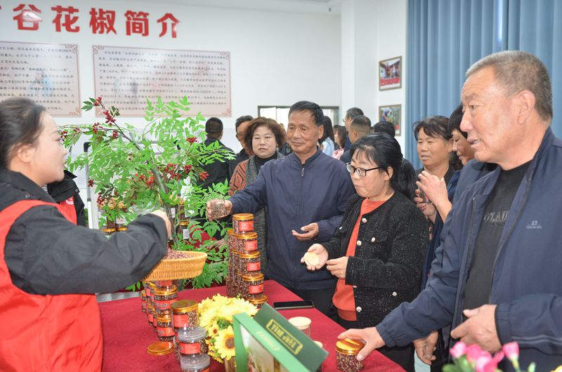 10月17日,甘谷县六峰镇农小胖农产品专业合作社工作人员与椒农互动学习。新华网发(新天水记者 马海林 摄)