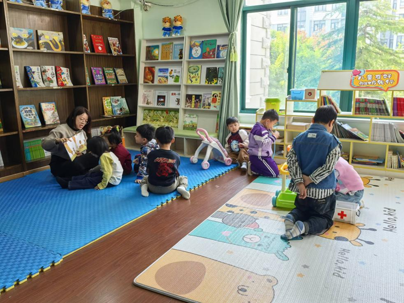 在社区儿童成长中心,孩子们在工作人员的照看下愉快玩耍。新华网发(大众日报记者 董方舟摄)