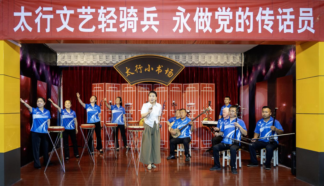 山西省晋城市陵川县盲人曲艺宣传队理论宣讲节目《党的二十届三中全会指航道》。李剑琦摄